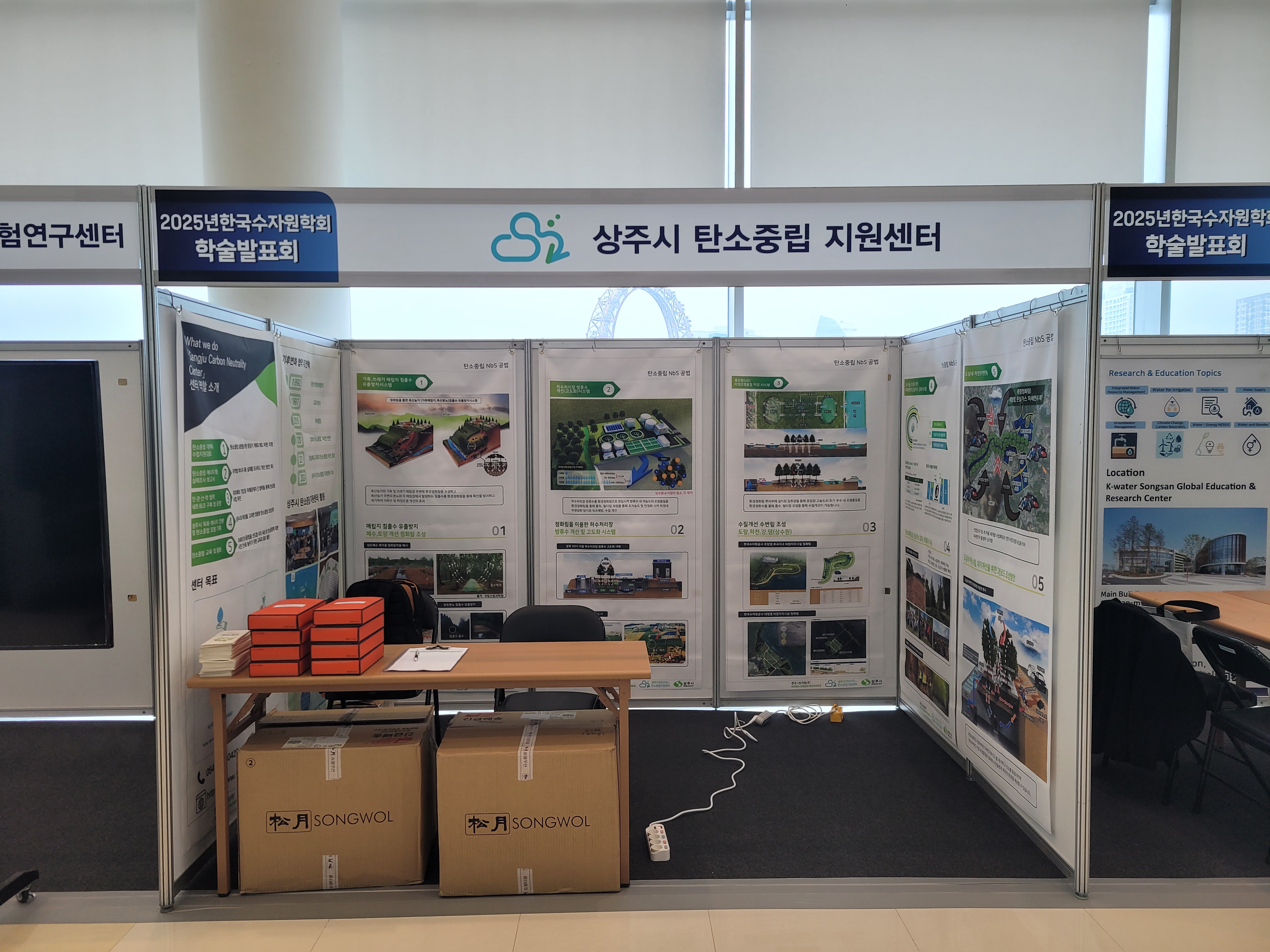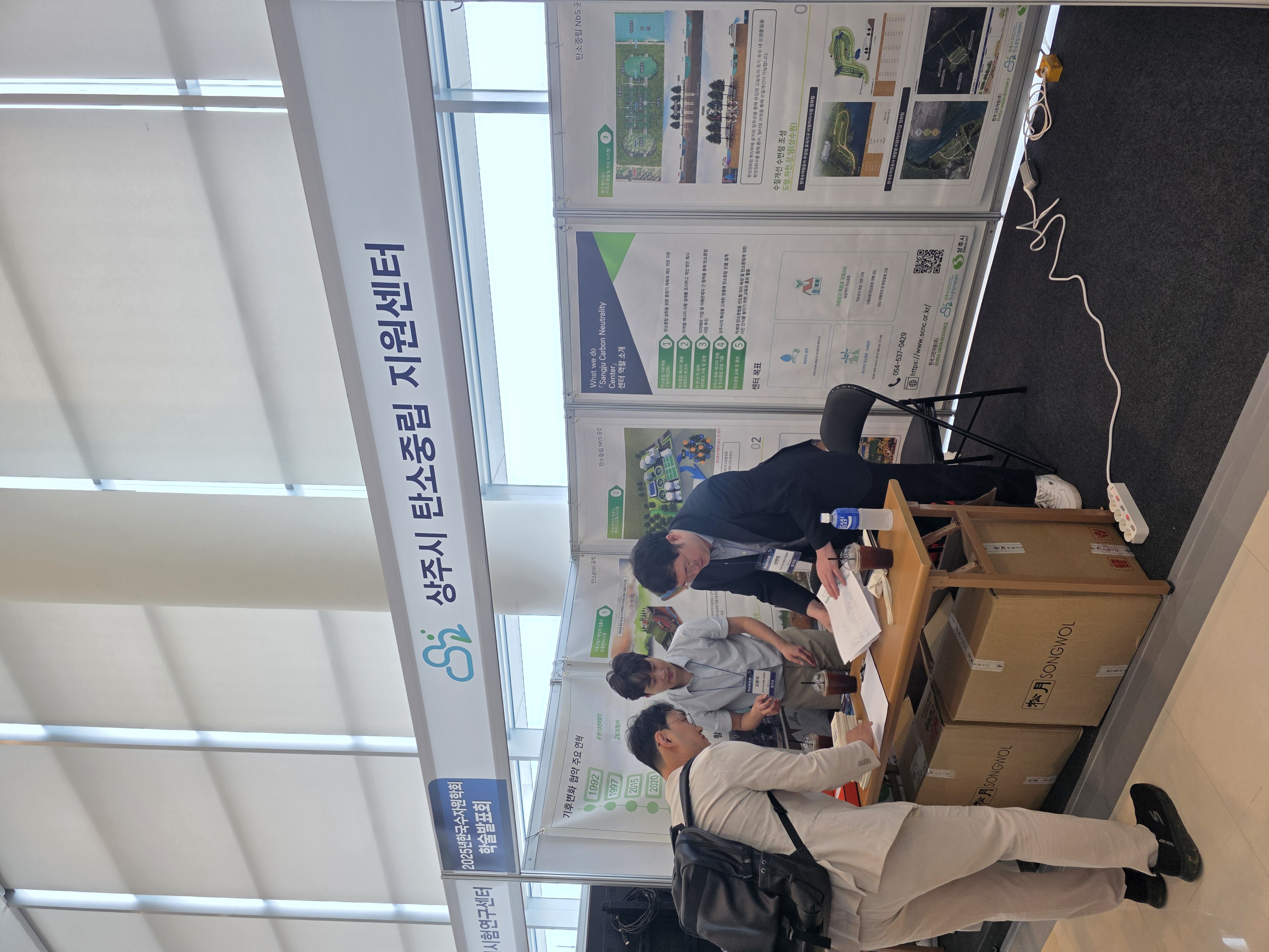 부스 홍보는 현재 센터에서 중점적으로 제안하고 있는 “기후위기 대응을 위한 자연기반해법(NbS) 탄소중립 전략”을 주제로 진행되었다. 부스에서는 NbS 기법을 통한 연구가 탄소중립 달성에 기여하는 방식을 중심으로, 생태계 복원과 산림 조성 등의 활동이 탄소 흡수 및 저장 기능을 효과적으로 수행하며, 기존의 기술 중심 감축 방식에 비해 지속가능성과 비용 효율성이 우수함을 설명하였다. 특히 영주댐 등에서 추진 중인 자연순환림 조성 모델을 사례로 제시하며, 설계 개념과 관리 방식, 정책적 활용 방안을 구체적으로 소개하였다. 이 모델은 생태적 기능 회복뿐만 아니라 지역 일자리 창출, 관광 자원 등 지역 경제 활성화와 연계될 수 있는 가능성을 지니며, 이를 통해 타 지자체로의 확산 가능성 또한 함께 강조하였다.